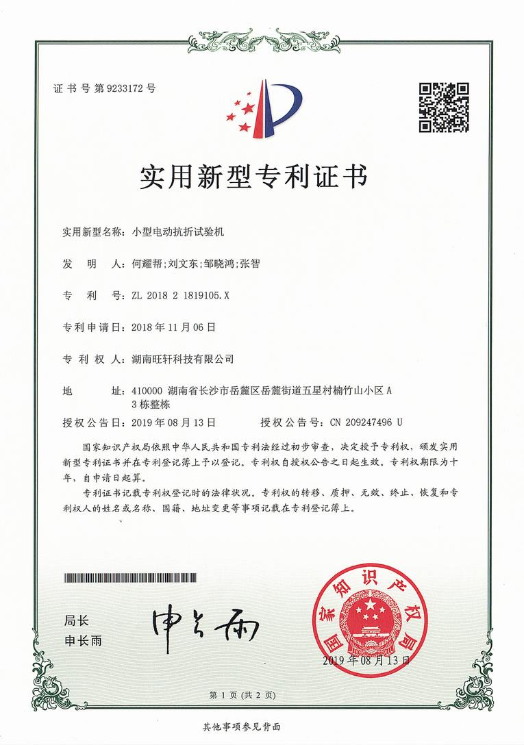 實(shí)用新型專(zhuān)利-小型電動(dòng)抗折